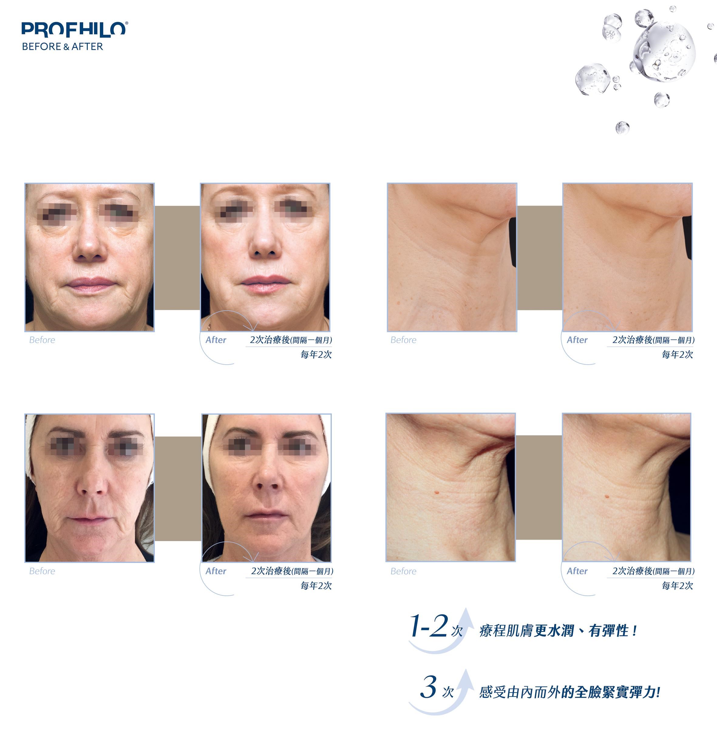 逆時針(PROFHILO®)主要施打於臉部重點抗老區域及頸部,也逐步擴展至手背、手臂和其他身體部位,針對局部鬆弛、皺紋和彈力減退問題,達到全方位自然抗老與肌膚重塑效果。
